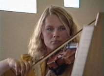 Laura Virtala soitti viulua sukukokouksessa 1990.